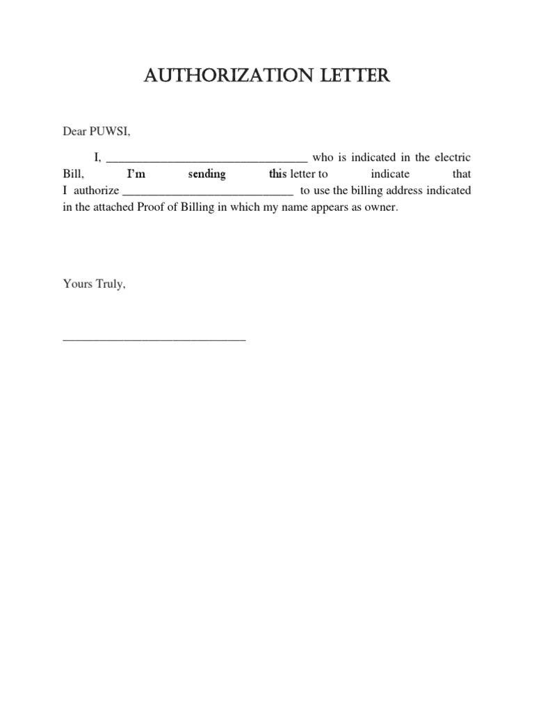 Authorization Letter For Proof O Billing Docx